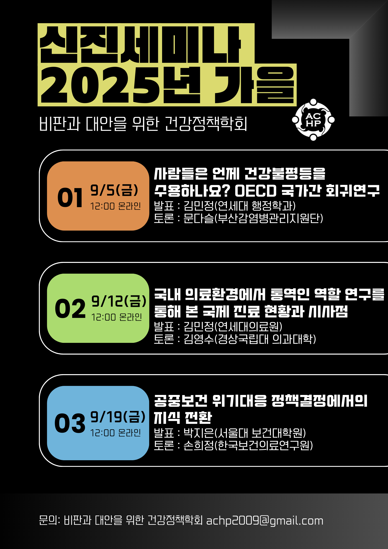 [비판과 대안을 위한 건강정책학회] 25년 가을 신진세미나 홍보 안내