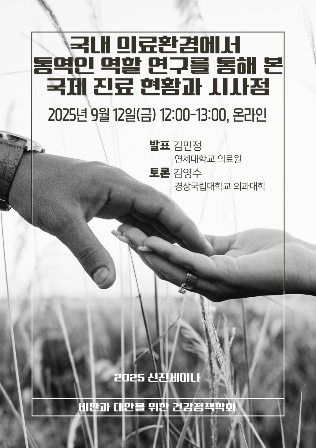 [비판과 대안을 위한 건강정책학회] 2025 가을 신진세미나 2회차 안내