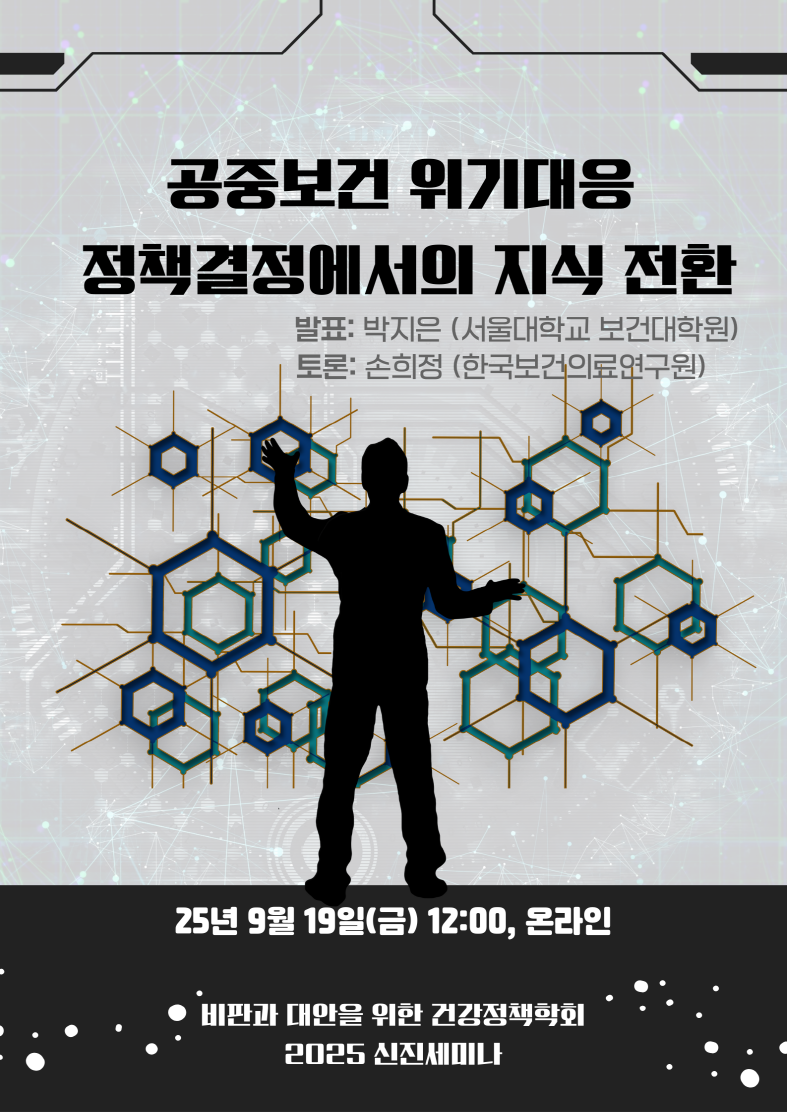 9/19(금), [비판과 대안을 위한 건강정책학회] 2025 가을 신진세미나 3회차 안내