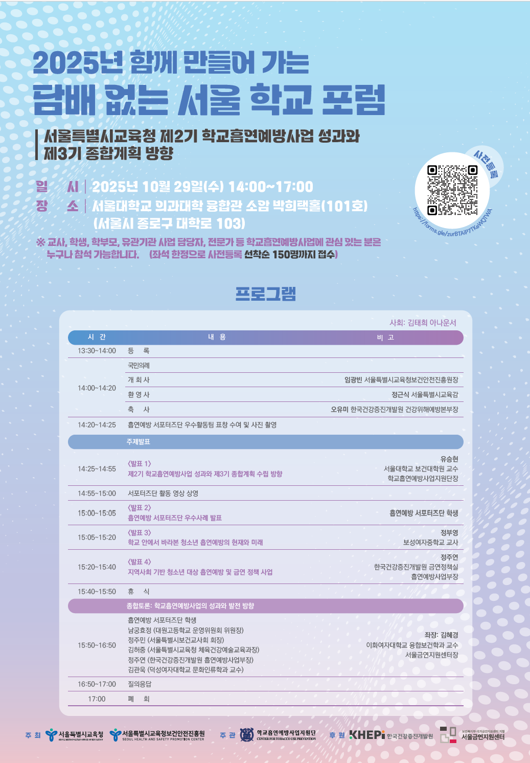 10/29(수), [서울특별시교육청] 2025년 학교흡연예방사업 정책 포럼 개최