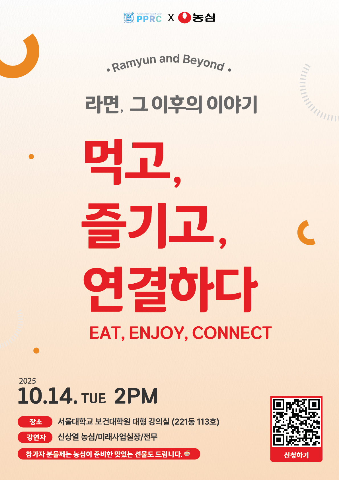 그리고 식품기업인 농심이 왜, 어떻게 보건대학원의 인구학과 콜라보를 진행하고 있는지 알 수 있는 좋은 기회가 될 것입니다!