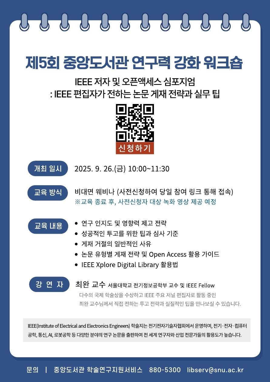 2025년 제5회 중앙도서관 연구력 강화 워크숍 개최 안내