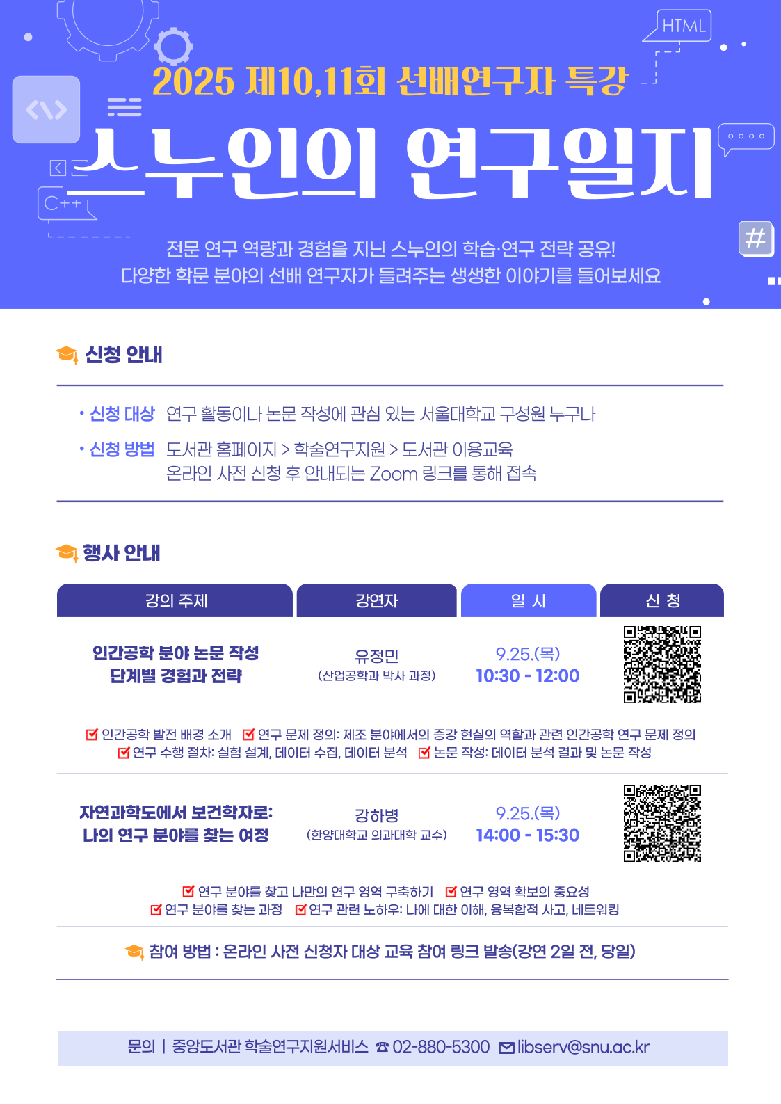 제10,11회 선배 연구자 특강 「스누인의 연구일지」 개최 안내