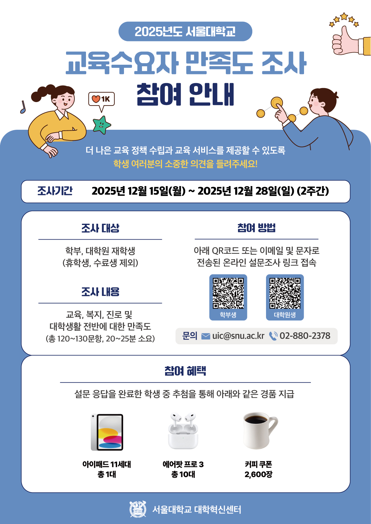 「2025년도 서울대학교 교육수요자 만족도 조사」안내