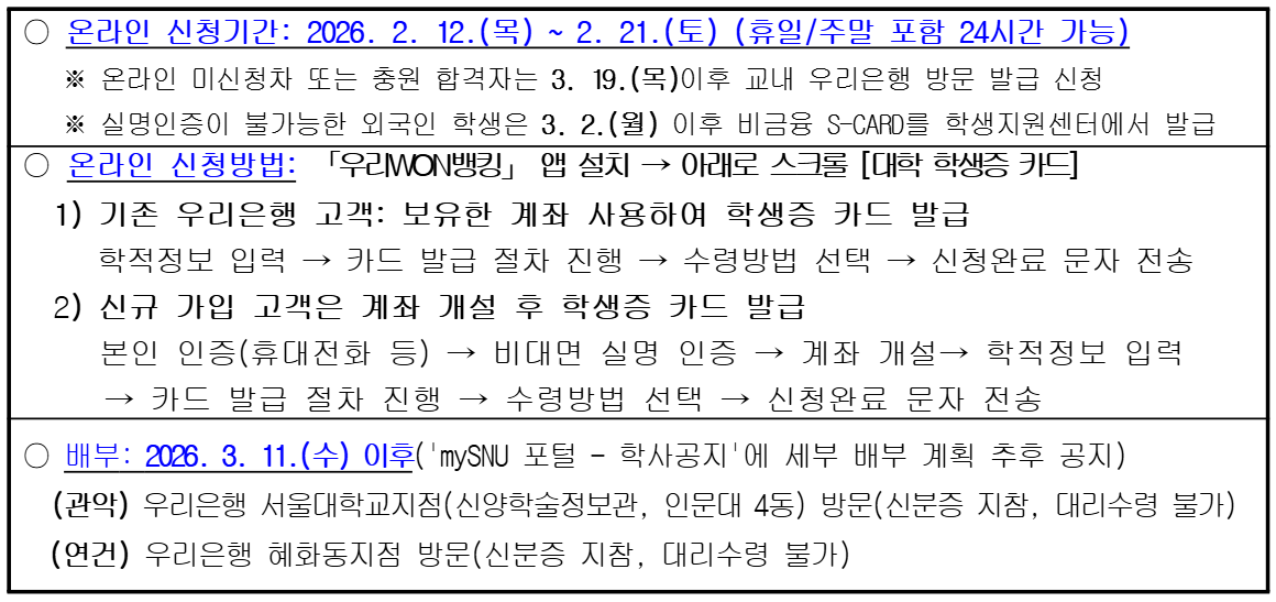2026학년도 1학기 신입생 학생증(S-CARD) 발급 안내