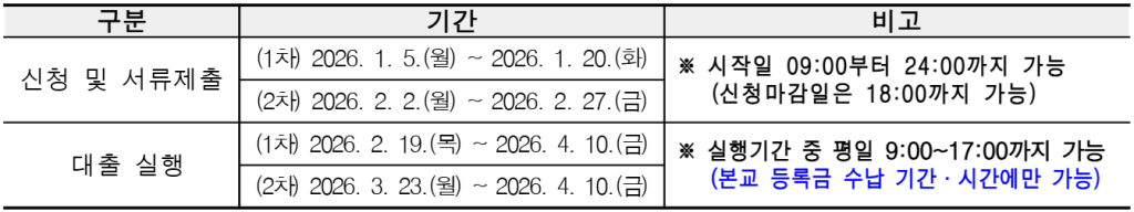 ▪ (지원대상) 2026학년도 1학기 본교 재학, 입학(신·편·재입학) 또는 복학 예정인 대한민국 국적 학부·대학원생 중 아래 요건 1개 이상 해당자