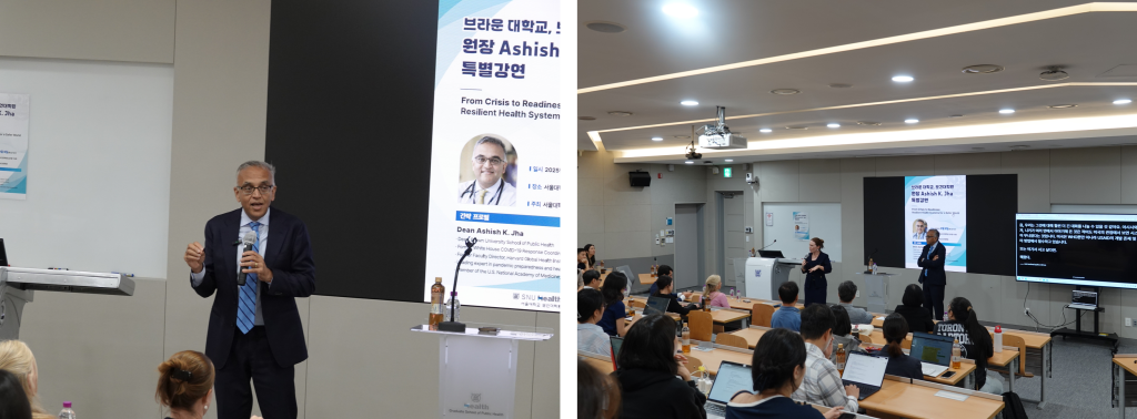 2025년 9월 9일(화) 낮 12시, 서울대학교 보건대학원 221동 113호에서 브라운대학교 보건대학원장 Dr. Ashish K. Jha 교수의 특별 강연이 성공적으로 개최되었다.